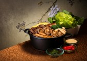 Poon Choi pot can be heated by induction cooker.